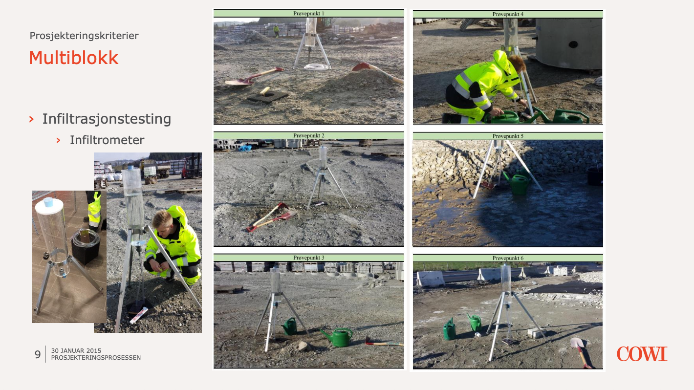 Overvannsfaget var helt nytt da Test- og demonstrasjonsfeltet ble etablert. Her komprimeres parkeringsarealet, med tett indusgtristein.